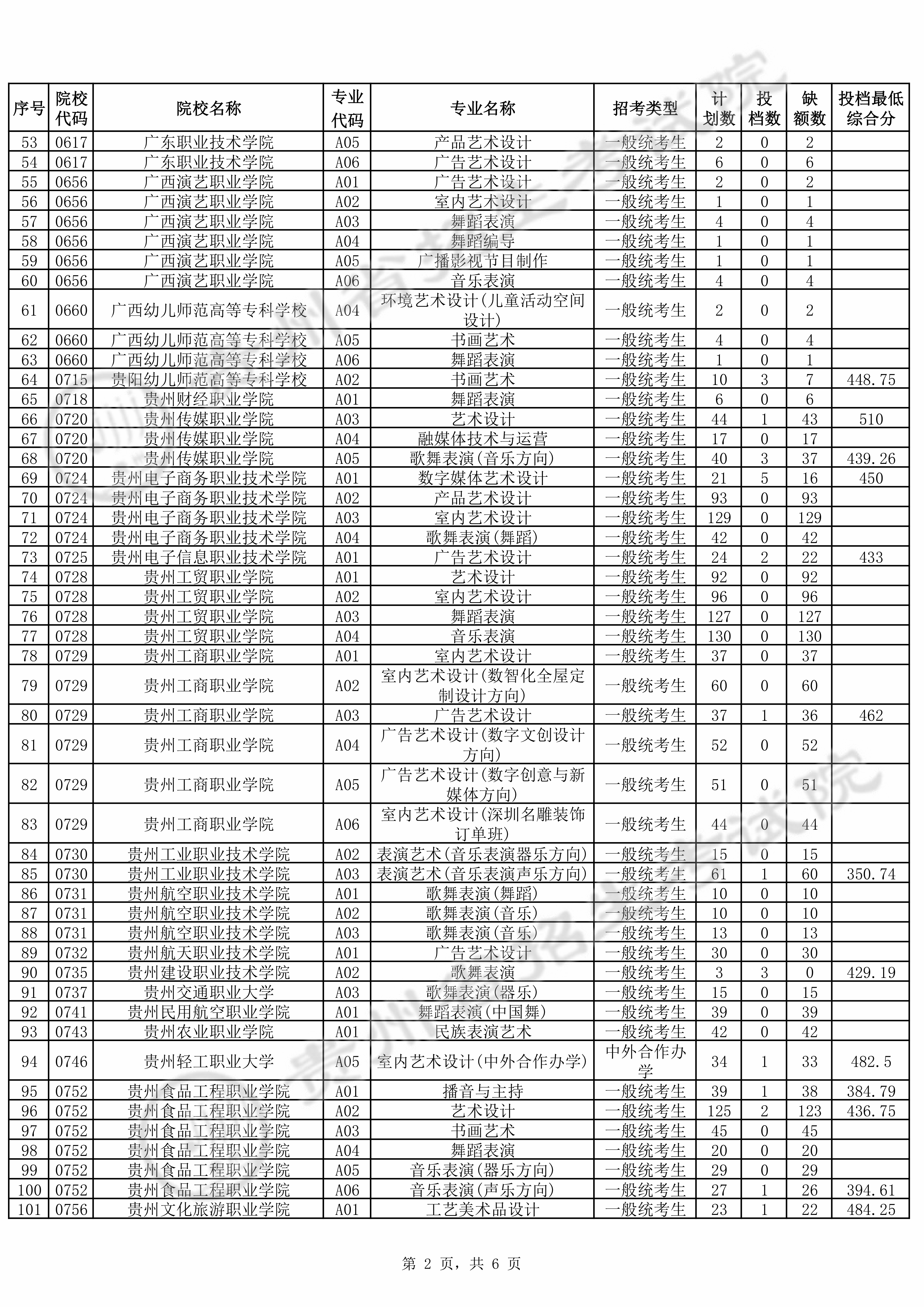 | 0724 | 贵州电子商务职业技术学院 | A04 | 歌舞表演(舞蹈) | 413.50 | 专科 | 不限 | 1,2,3 | |