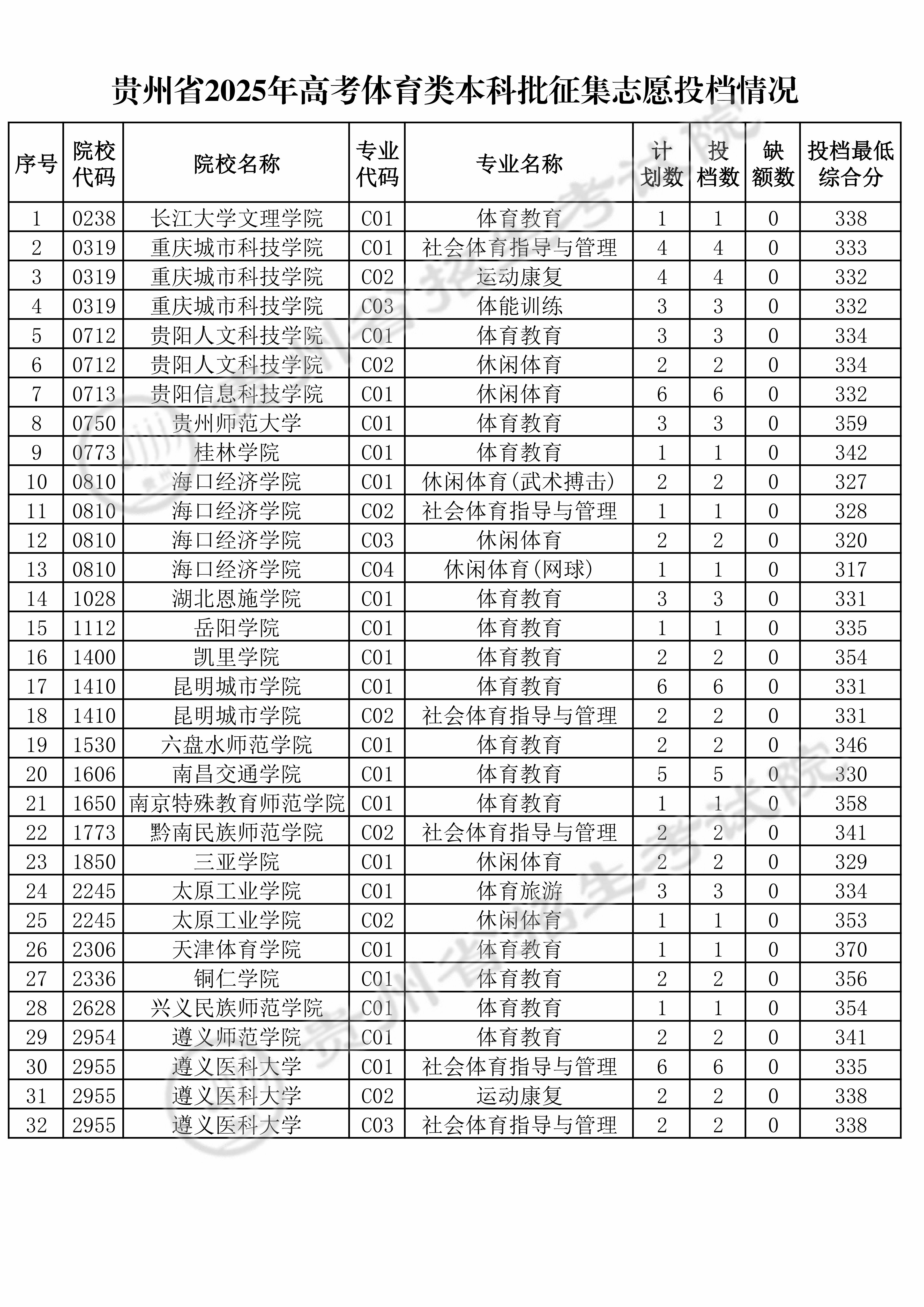 2025年贵州高考体育类本科批 桂林学院 的 体育教育 专业录取分数溯源信息
